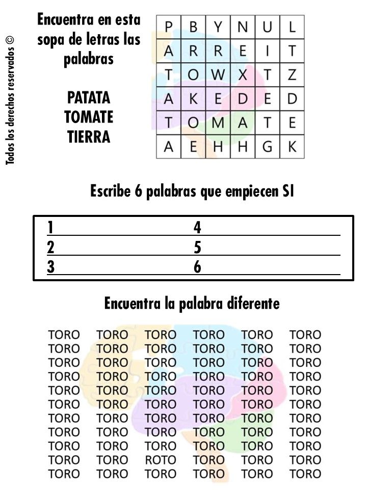 • Aparentemente los ejercicios pueden parecer sencillos, bastantes de ellos. El fin de la Estimulación Cognitiva es entrenar y no frustrar. Por ello es preciso realizarlos acorde a las capacidades de cada uno. En caso de precisar mucha ayuda o no conseguir éxito en su mayoría, deben contactar con los profesionales de la Unidad de Memoria al correo para adaptar esta herramienta (es posible que sea necesaria una valoración)